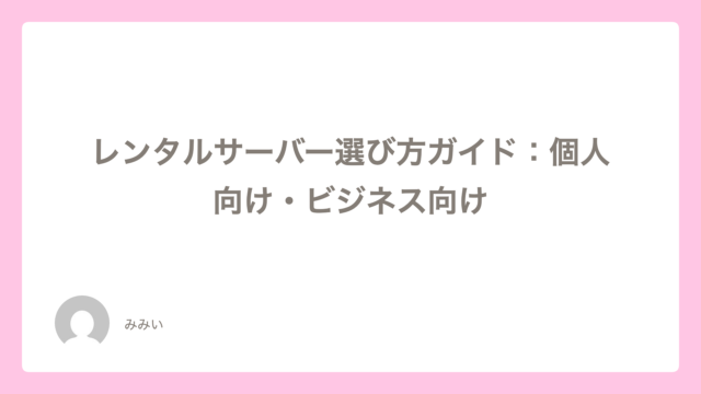 レンタルサーバー選び方ガイド:個人向け・ビジネス向け